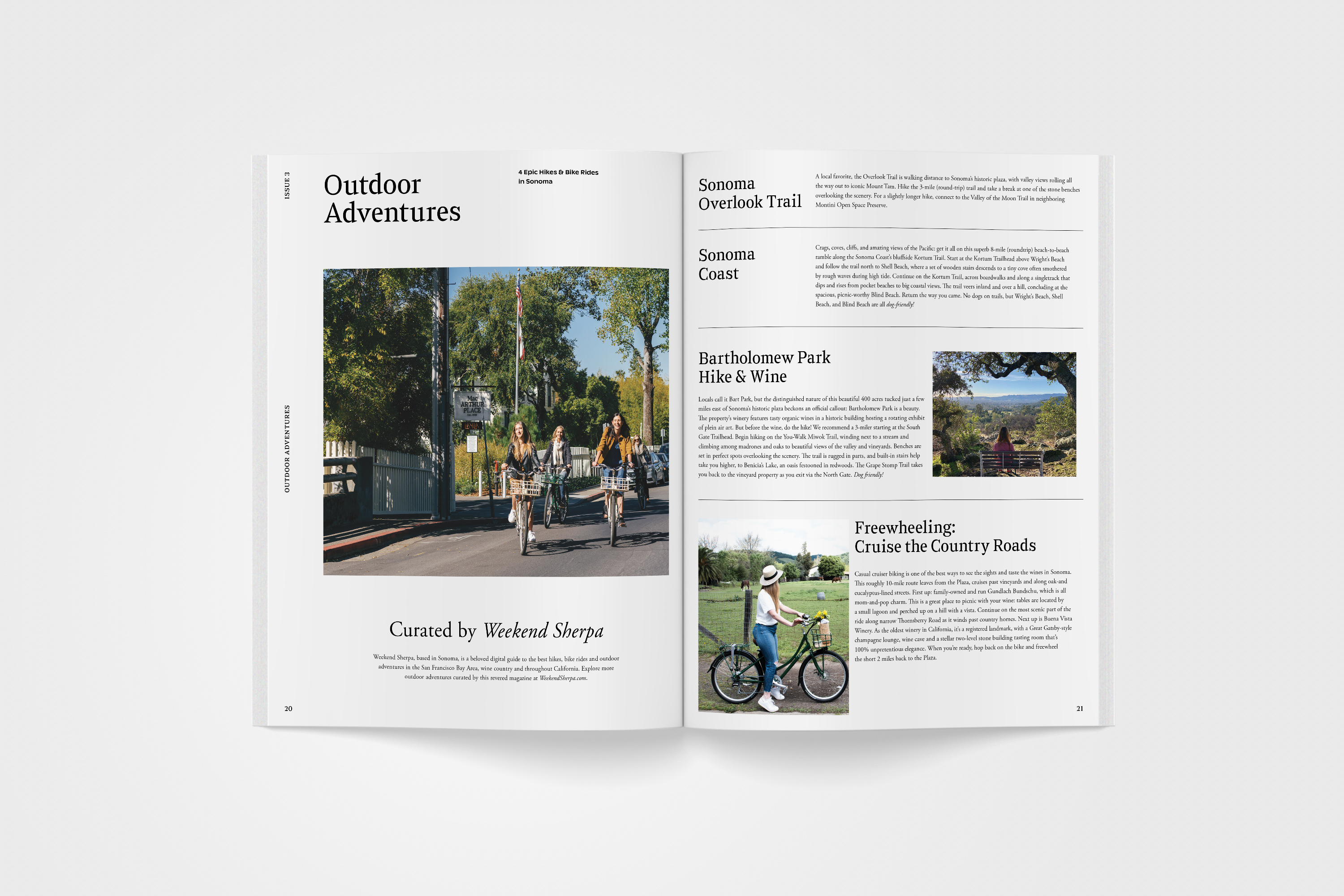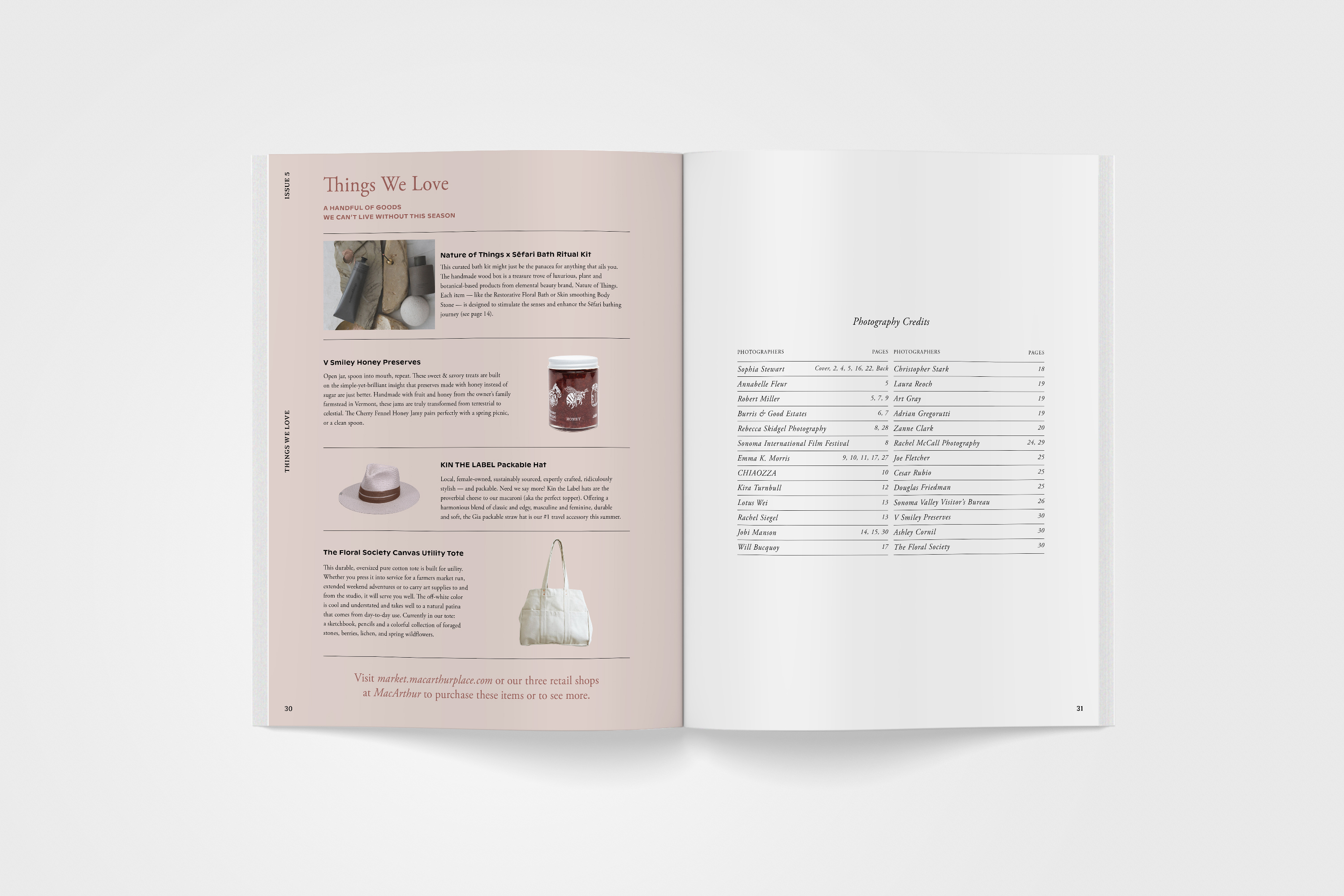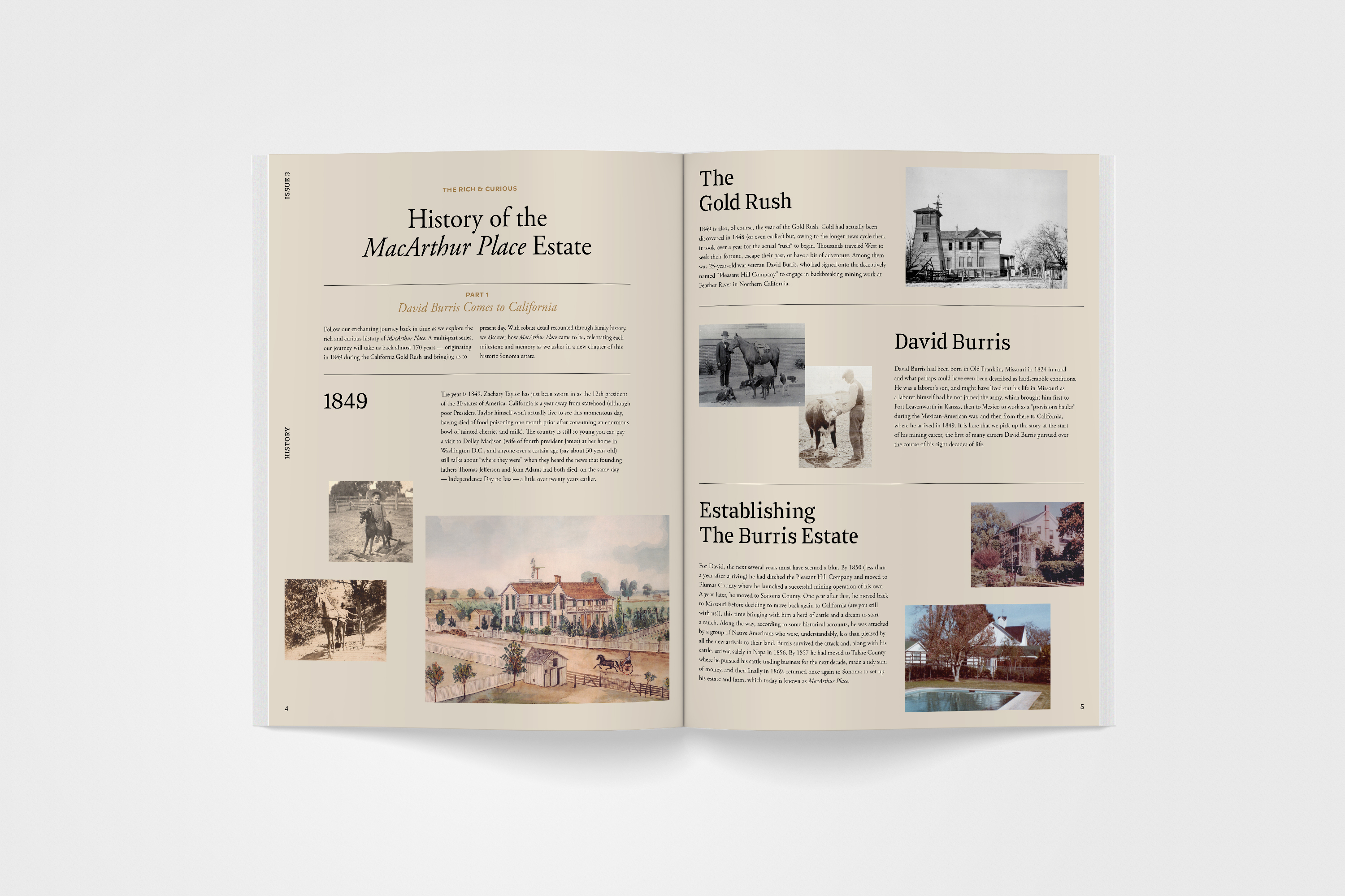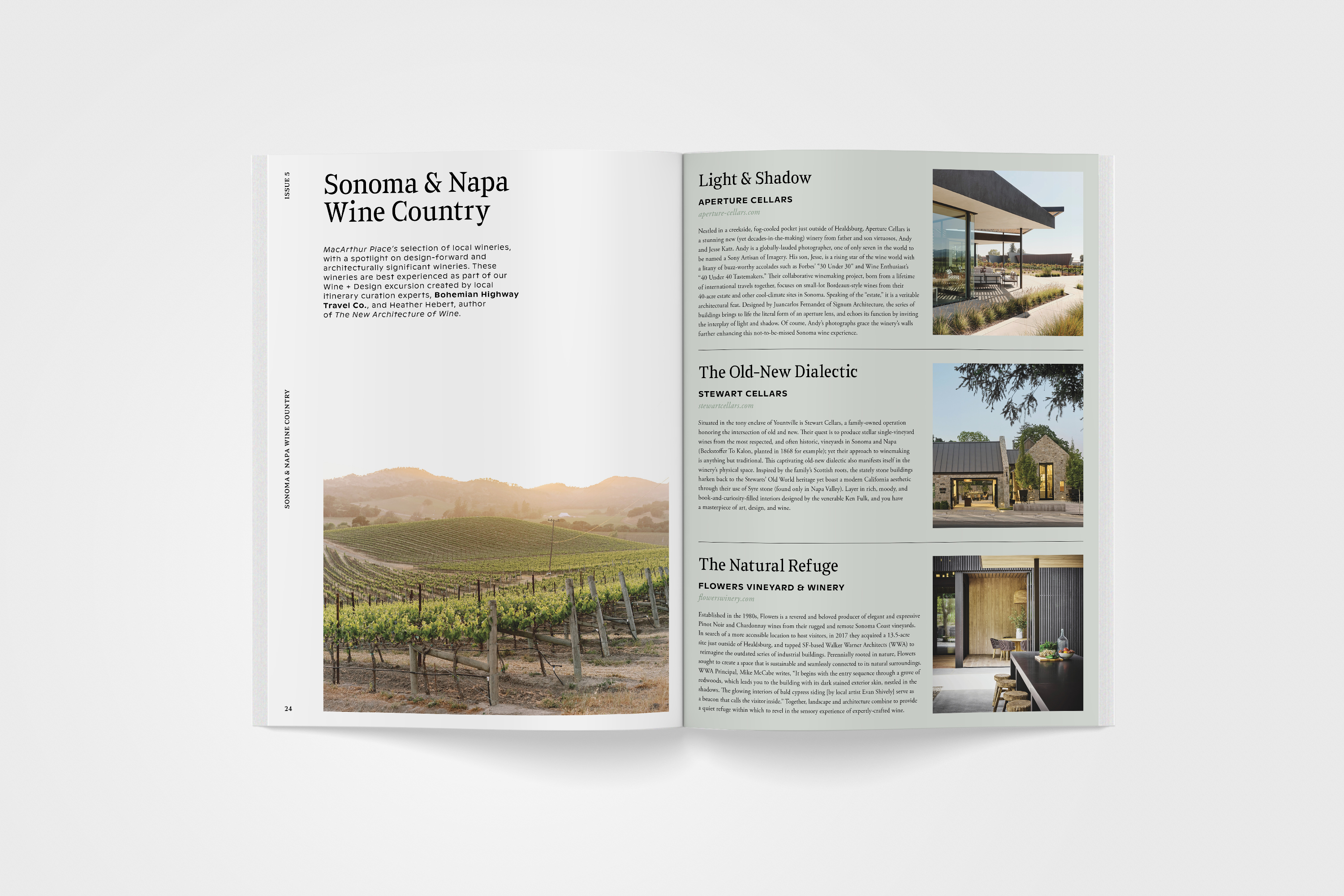 Twenty-Nine Press is the quarterly in-room publication of MacArthur Place, a luxury hotel and spa in Sonoma, CA. Designed as both a guide and a keepsake, the magazine introduces guests to the property’s offerings while spotlighting the surrounding community.